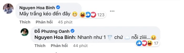 Theo đó Shark Bình tự tiết lộ biệt danh mới bên dưới bài đăng của diễn viên Phương Oanh. "Vị cá mập" này viết: "Mây trắng kéo đến đây". Ngay sau đó diễn viên Phương Oanh đã bất ngờ trước tốc độ bình luận "nhanh như chớp" của Shark Bình, đáp lời: "Nhanh như một cơn lốc chứ mây trắng nỗi gì...".