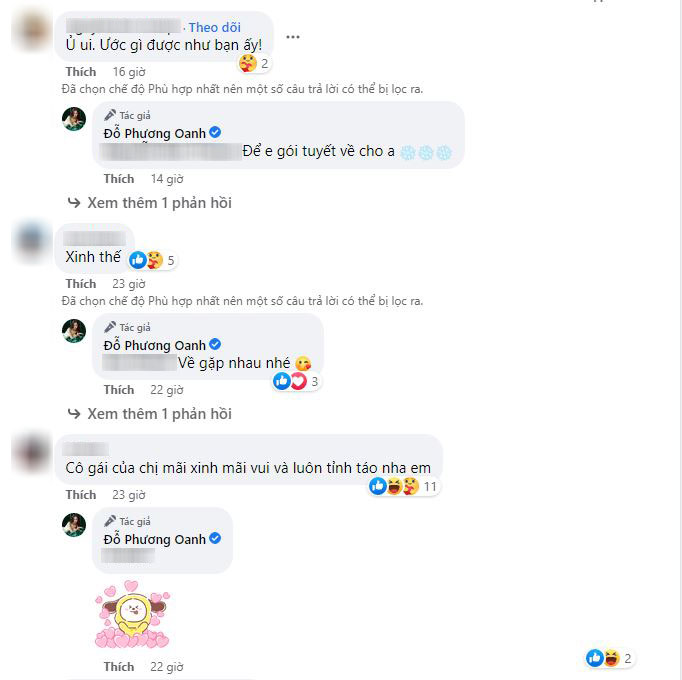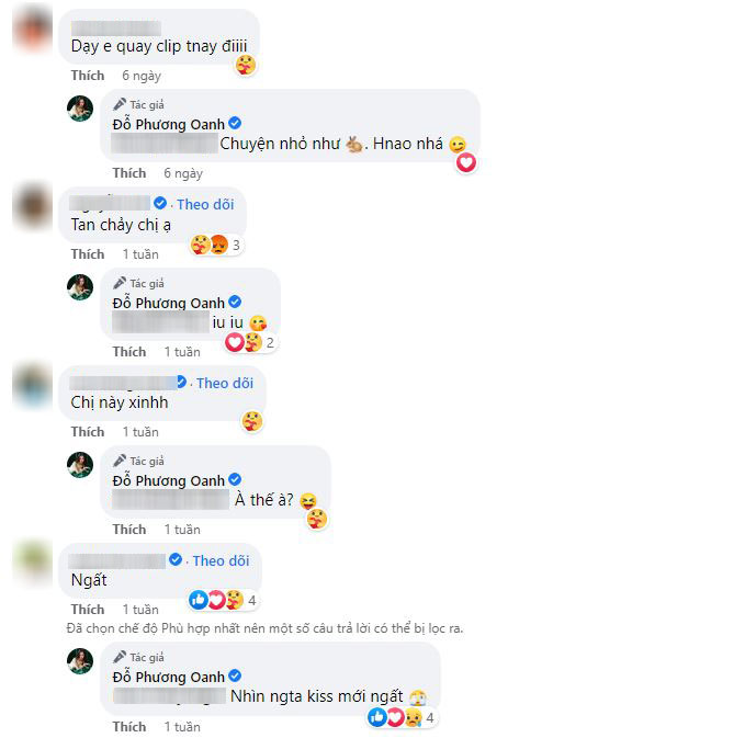 Trước những động thái tích cực của Phương Oanh, dân tình cũng để lại nhiều lời động viên dành cho cô nàng: "Dù thế nào thì chị yêu hãy cứ xinh đẹp như thế này nhé", "Oanh đẹp lung linh và Oanh đẹp quằn quại", "Cô gái của chị mãi xinh mãi vui và luôn tỉnh táo nha em", "Đúng vậy, xinh đẹp và biết yêu thương bản thân cũng là hạnh phúc con gái nhỉ"...