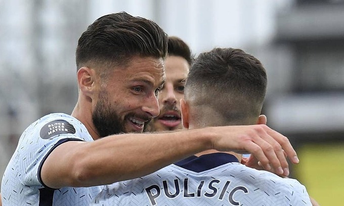 Giroud chia vui cùng Pulisic. Ảnh: AP.