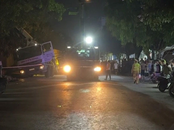 Khoảng hơn 18 giờ tối qua 12.5, xe bồn chở bê tông tươi của Công ty Bình Phương đang nối cần cẩu truyền ống dẫn rót bê tông đổ mái tầng 2 ngôi nhà, thuộc tổ dân phố số 6, phường Tiền Phong, TP Thái Bình, tỉnh Thái Bình thì chân chống trụ xe bơm bê tông bị nghiêng đổ, gây sụt lún một nắp cống.